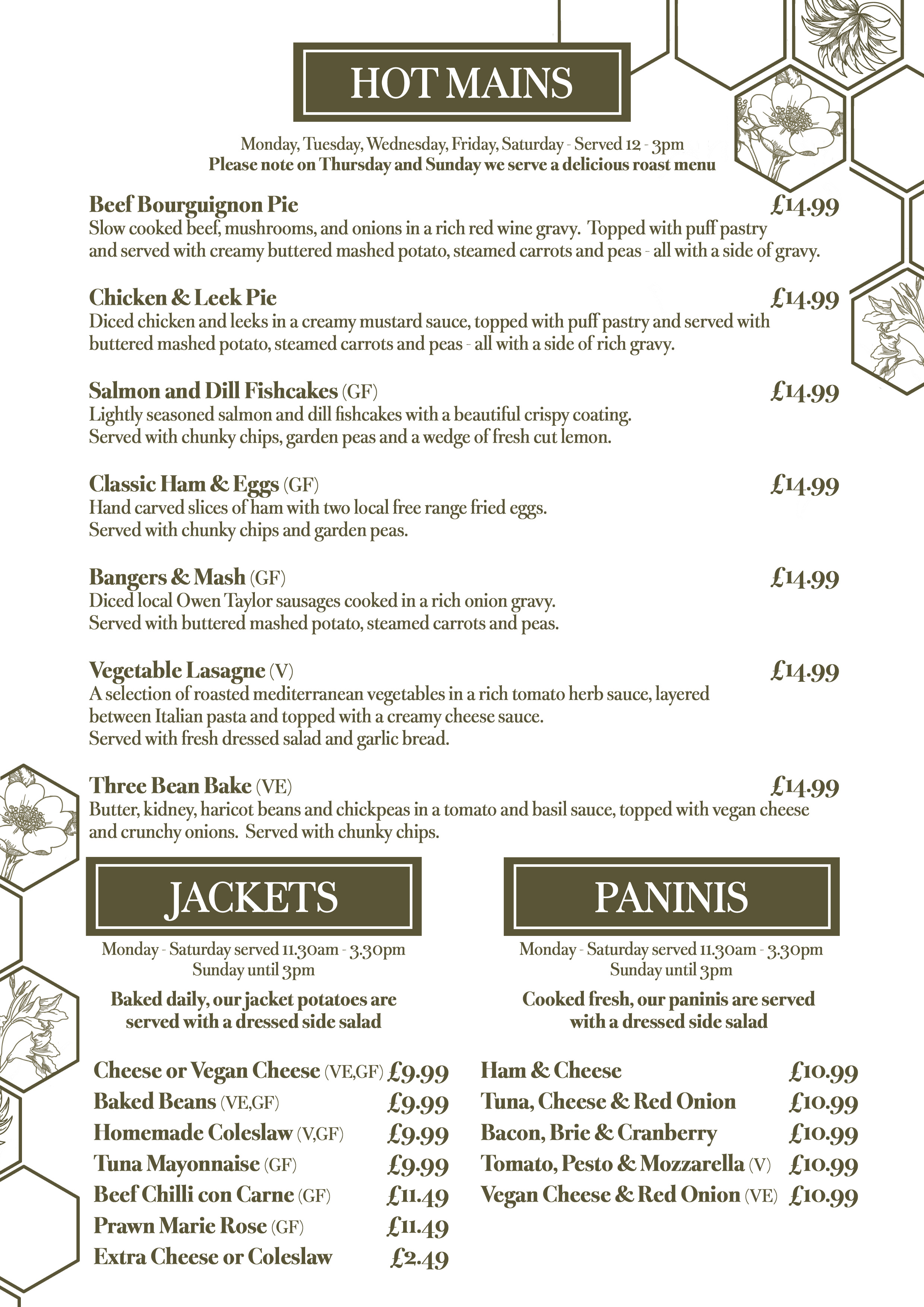 Our Menu Drinks Menu Main Menu - Served Monday, Tuesday, Wednesday, Friday and Saturday Roast Menu - Served Thursday and Sunday Children's menu